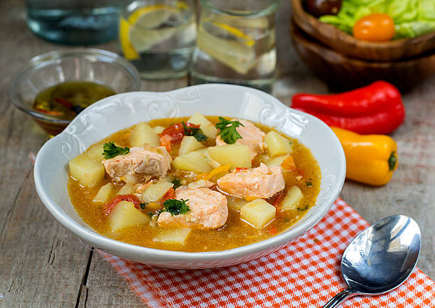 This traditional fisherman’s stew combines several types of fish, potatoes, and vegetables in a rich, savory broth. Prepared slowly, it reflects practical coastal cooking and shared meals.