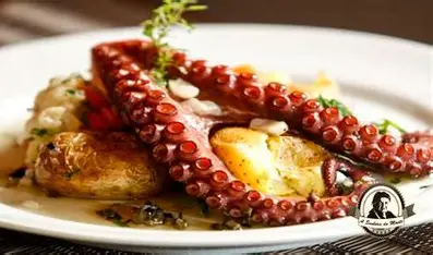 This dish features octopus roasted until tender, then drizzled generously with olive oil and garlic. The result is rich and aromatic, with a soft interior and lightly crisp edges.